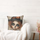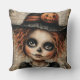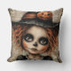 Patchwork Whimsy : La poupée qui attend dans les ombres Jeter Oreiller Avec des lèvres cousues et des yeux hantés, la figure de poupée regarde d'un paysage sépia rêveur - mi-sort, mi-tristesse. Ses boucles enflammées se déversent sous un casquette de sorcière tordu couronné d’un citrouille mousseux, symbole de la fête portée comme un fardeau. Le nez squelettique et le regard assombri font allusion à des histoires enfouies profondément, tandis que le fond de gros titres en ruines et d'encre estompée murmure d'automnes oubliés. C’est un portrait de l’élégance étrange, où nostalgie et cauchemar tiennent la main sous la lune de la moisson.