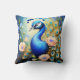 Coussin Peacock Displaying Feathers Among Flowers
