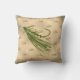 Coussin de pêche à la mouche. Des leurres à la mouche vintage dessinés à la main. Un grand leurre en vert, tandis que des mouches plus petites opaques en carrelage composent l'arrière - plan, sur un faux papier vintage sépia toné. Parfait pour le pêcheur à la mouche ou pêcheur !