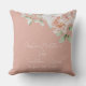 Ce coussin à mariage floral romantique dispose d'un élégant arrière - plan de pêche poussiéreux avec pêche à l'aquarelle et fleurs blanches. Un bouquet délicat est représenté sur le dessus. Des exemples de noms de couple sont imprimés ci-dessous dans une police de script élégante.