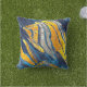 Coussin peinture Abstraite, rayures, or, argent, bleu