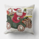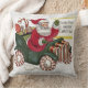 20" x 20" lancer l'oreiller avec une image vintage des années 1940 de saint Nick dans la neige saluant de sa voiture ornée de bonbons à la menthe poivrée. Revers rouge. Voir l'ensemble de la collection Coussin Holiday dans le DECOR | section Coussin.