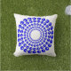 Des perles bleues filetées sur une fine ligne, forment un cercle. Le cercle est répliqué 4 fois de plus dans des cercles de plus en plus petits allant au centre. Le placement du "trou" dans la perle crée une illusion optique d'effet tunnel. Le dos est bleu solide.