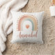 Ajoutez une touche personnelle à l'espace de votre bébé avec ce coussin personnalisé boho rainbow ! Avec un arc-en-ciel aquarelle doux dans des tons roses terreux et un texte personnalisable, ce coussin cosy est parfait pour les nurseries, les cadeaux de baby shower ou les anniversaires. Un accent charmant et significatif pour une décoration boho moderne.