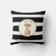 Un coussin comportant une conception orientée de région boisée avec une illustration d'un renard de bébé utilisant une couronne de fleur. La mouffette se repose à l'intérieur d'un cercle avec l'équilibre inspiré par pom de pom.