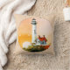 Joli coup d'oreiller caractéristiques Lighthouse au coucher du soleil aquarelle circulaire, arrière - plan neutre
