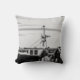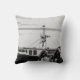 Coussin photo noir et blanc d'un bateau de pêche avec des cages à homards, titre: «La mise à l'eau », Îles-de-la-Madeleine, Québec, Canada. Marie-Ève LaBadie photographie