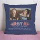 Une photo moderne les meilleurs amis jettent oreiller, avec les lettres, BFF, et personnalisée avec vos noms et une citation d'amitié en dessous. Gardez le devis tel quel ou ajoutez votre propre message. Ajoutez également votre photo préférée à l'avant du coussin. Le dos du coussin a un motif rayé qui correspond au cadre autour de la photo sur le devant. Personnalisez-le pour votre bestie ! Conçu pour vous par Blackberry Boulevard.