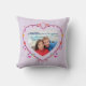 Forme de coeur moderne de votre photo préférée avec coeur décoratif sur coussin à lancer violet.