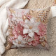 Coussin Pink and White Floral and Pearls Throw Pillow