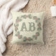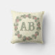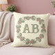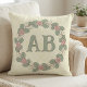Coussin Pink Green Rose Wreath Monogram Throw Pillow