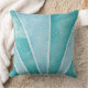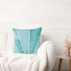 L'élégant oreiller côtier à jetons en coton présente un design abstrait de coquille d'aquarelle en bleu océanique et turquoise tropicale. Parfait pour une maison de plage, location de vacances et décoration de maison nautique.