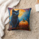 Coussin Pleine lune Citrouille de Kitten noir Feuilles d'a