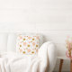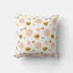 Magnifique coussin décoratif avec des points dorés et roses sur fond blanc.