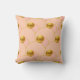 Magnifique coussin décoratif avec des points dorés sur des cercles rose corail. Les points dorés forment un hexagone.
