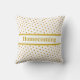 Coussin de décoration avec de beaux pois métallisés dorés sur fond blanc. Le retour à la maison peut être personnalisé. La maison et la famille sont notre véritable trésor !