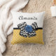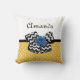 Ajoutez une touche girly à votre style de décoration maison avec ce carré à pois jaune et blanc mignon motif jetez un oreiller avec un arc en chevron noir et blanc tendance et un rose à ruban bleu chic. Faites de ce rétro jaune et bleu répond au design moderne personnalisé en ajoutant le nom de votre ado fille. Image imprimée plate, PAS le ruban de rosette réel et l'arc.
