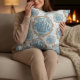 Ce design coussin est un mélange de diamants, de triangles et de petits détails qui se mélangent agréablement. Si vous regardez de plus près, vous verrez même des formes de poissons cachées dans le motif — un clin d’oeil amusant et subtil à la nature. Les tons doux bleu et beige sont calmes, un peu comme l'eau bouge doucement. C’est un mélange parfait de naturel et de propreté, avec une touche vintage et moderne. Il apporte une touche d'inspiration océanique à tout espace.