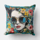 Coussin Pop Art Face avec Fleurs, Oiseaux et Papillons