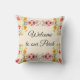 Bienvenue dans votre véranda avec ce joli coussin fleuri rose. Ce coussin a été créé à partir d'une jolie bordure pastel aquarelle. Personnalisez ce coussin avec vos propres mots ou achetez comme indiqué avec "Welcome to our Porch" sur le devant et sur le dos "Home sweet home"