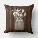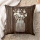 Des vases en bocal de mason amusants remplis de fleurs, sur des arrière - plans en bois de grange brune, créent de jolis coussins carrés pour orner votre canapé ou lit dans votre maison de campagne ou de ferme à thème. Par Monkey Business Graphic Design, 2018.