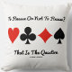 Montrez votre pont tordu / dupliquer l'assiette de pont avec ce coussin de lancer avec les quatre costumes de carte ainsi que la question rhétorique suivante souvent notée par un déclarant — à l'intérieur d'elle ou de son esprit lors de jouer au pont : "À la finesse ou pas à la finesse? C'Est La Question". Avec mes excuses à William Shakespeare ! Pont mémorable en disant jetez l'oreiller pour n'importe quel joueur de pont passionné en essayant de décider quelle carte jouer ensuite!