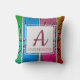 Bleu Vert Orange Rose Joli | Oreiller à lancer monogramme. Customisez ce bel oreiller à lancer en changeant le monogramme initial de votre nom de famille. Pour toute personnalisation supplémentaire, n'hésitez pas à me contacter à l'adresse mypaperlove2021@gmail.com