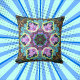 Coussin Psychédélique Mandala Flower bleu jaune et rose