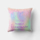 Un coussin pour une Quinceañera, 15e année. Un arc-en-ciel tendance, arrière - plan holographique en violet, rose, or rose et vert menthe. Décoré faux gouttes de parties scintillant, la peinture goutte à goutte. Le texte : Quinceañera est écrit en violet avec un grand script de style à la main moderne. Personnalisez et ajoutez un nom.