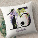 Coussin personnalisé Quinceañera pour le 15e anniversaire d'une jeune femme. Ce coussin de conservation a un numéro audacieux 15 orné de glycine et de feuillage dans les tons violet rose et vert. Le modèle est prêt pour vous à personnaliser avec votre nom, écrit en violet typographie manuscrite. Veuillez naviguer dans mon magasin pour les invitations et les accessoires correspondants.