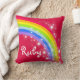 coussin coloré des couleurs rouge et orange arc-en-ciel. Personnaliser avec le nom de votre choix, cet exemple lit Ruby. Ce serait un grand ajout à la chambre pour enfants. Conçu exclusivement par Sarah Trett pour www.mylittleeden.com