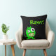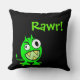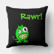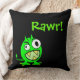 Drôle petit dessin animé de diable en vert néon dit Rawr! Ce petit gars a un grand visage rond. Un oeil est plus grand que l'autre, ce qui le fait avoir l'air d'un regard de googly. Il a des crocs tranchants et une jolie petite queue de démons.