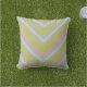 Éclaircissez votre espace extérieur avec notre motif rayé chevron en chartreuse, bleu clair, orange et gris clair. Mélangez et égalez avec notre collection de coussins en plein air.
