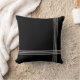 Ce carreau confortable (disponible dans 2 formes) a un simple, propre, conception de style d'art déco d'une bande de 3 rayures étroites blanches glaciales légèrement décentrées du côté droit intersecté par une bande de répétition de 3 tournés horizontalement compensé du fond. Le dos est noir solide pour vous donner un choix.