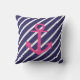 Coussin Rayures de bleu marine et conception d'Ancre de
