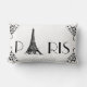 Donnez à votre décor un accent français avec ce coussin lombaire de 13 po x 21 po qui possède un monument célèbre. Fabriqué à la main avec du lettrage chic noir parisien et des détails de coin décoratif. Voir toute la collection de Coussins cancan dans le DECOR | section Coussin.