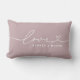 Moderne et élégant design lombaire sur mesure avec oreiller conception simple et minimaliste de la typographie "Amour" qui comprend des détails florissants et de coeur. Personnalisez le texte majuscule ci-dessous avec un monogramme pour un couple ou une famille, un devis ou un autre texte préféré. On peut modifier les couleurs violettes et blanches de couleur lilas clair et mauve rose-ish.