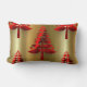 Un élégant coussin de Noël avec un motif d'arbres rouges de Noël dressé contre un arrière - plan métallique en or pour ajouter une touche de classe festive à votre décoration et divertissement de maison cette saison de vacances.