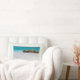 Un coussin avec une belle photo. Une plage de sable blanc, au surf doux. Une eau tropicale turquoise entoure un rocher déchiqueté.