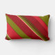 Cette coussin lombaire simple mais décorative dispose d'un motif abstrait rétro coloré aux rayures géométriques audacieuses dans les couleurs rouge, orange, marron, vert olive, noir et bronzé.