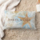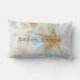 Cet oreiller à jetons a une belle empreinte d'étoile de mer côtière avec une grande étoile de mer réaliste et plusieurs autres surimprimé en blanc sur bleu clair arrière - plan avec lettrage maison de plage. Recherchez d'autres produits dans cette Collection Côtière. Concevez l'Emporium de mon Jenn.