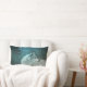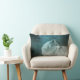 Un coussin avec une photo d'un magnifique loup gris-gris-farci. Dans l'arrière - plan est une forêt sombre avec des arbres. Vibe mystique magique.