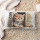 Coussin Rectangle Chat de gingembre aquarelle à la porte