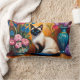 Coussin Rectangle Chat et bouquets siamois dans Vases aquarelle