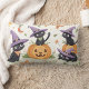 Coussin Rectangle Chats noirs mignons en casquette sorcière violette