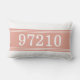 Pink Coral and White Zip Code Lumbar Coussin - Créez votre propre code zip lumbar coussin unique pour décorer votre nouvelle maison ou appartement en ajoutant le code zip à cinq chiffres au modèle personnalisé. Un cadeau mignon et tendance pour les jeunes mariés, comme un cadeau de ménage, ou tout simplement comme un nouveau morceau de décoration pour votre maison de plage / ferme rustique.