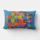 Un coussin lumbar à éléphant lumineux et gai pour égayer un bébé ou une chambre pour enfants. Un coussin d'éléphant coloré avec l'image d'un collage de tissu en bleu avec des couleurs jaune, rose, vert, violet et d'autres arc-en-ciel.