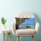Coussin avec une photo nature pittoresque. Belle mer bleu turquoise avec une plage de sable fin. Une grande roche brune offre de l'ombre du ciel bleu vif.