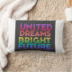 Le design des t-shirts comporte le texte "United Dreams Bright Future" dans un vif dégradé arc-en-ciel, commençant du violet et se terminant en rose. Le texte est défini sur un arrière - plan noir et s'affiche dans une police géométrique moderne. Le design transmet un message d'espoir, d'unité et d'optimisme, avec des couleurs qui symbolisent la diversité et l'inclusion.