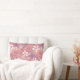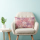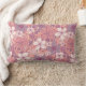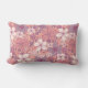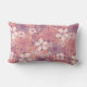 Cet oreiller rectangulaire à jetons présente des fleurs et des feuilles dans les tons pastel rose et violet sur un arrière - plan rose.